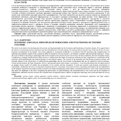 Економіко-правові засади формування та функціонування туристичних кластерів