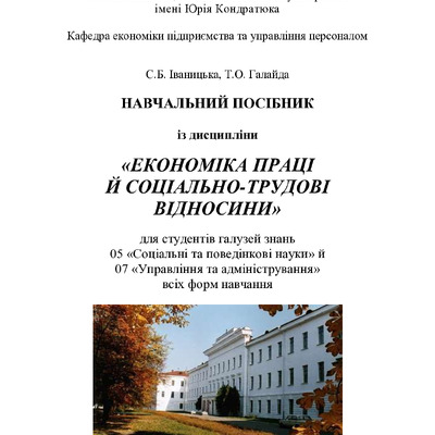 2021/04/30Навчальний посібник із дисципліни «Економіка праці й соціально-трудові відносини» для студентів галузей знань 05 «Соціальні та поведінкові науки» й 07 «Управління та адміністрування» усіх форм навчання