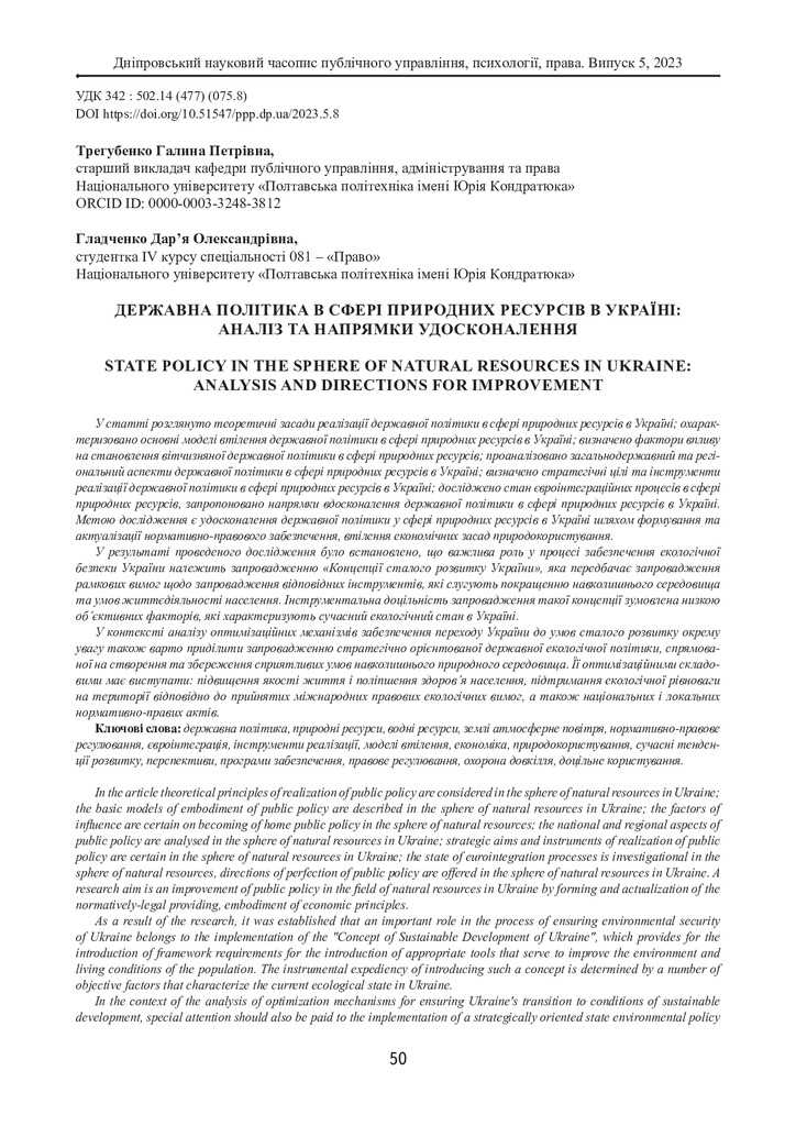 Державна політика в сфері природних ресурсів в Україні: аналіз та напрямки удосконалення