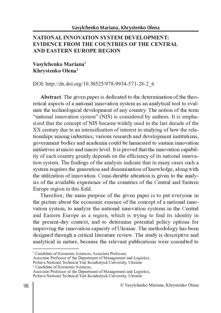 National innovation system development: evidence from the countries of the Central and Eastern Europe region