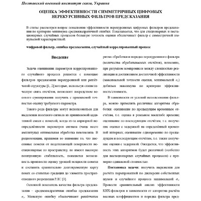 Стаття 2017/09/28Оценка эффективности симметричных цифровых нерекурсивных фильтров предсказания