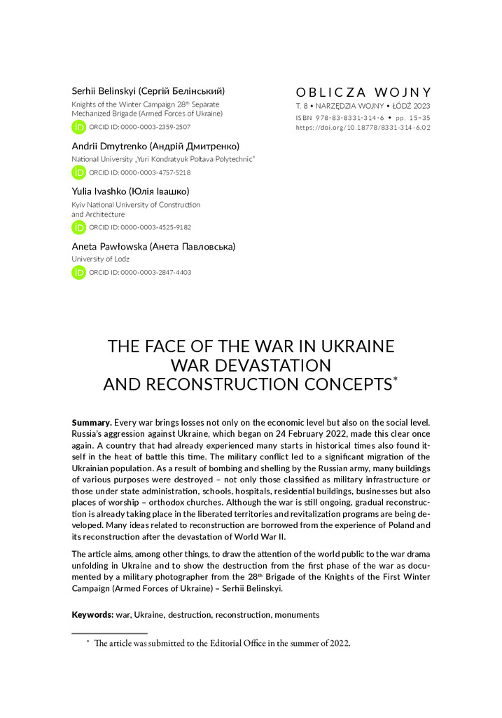 Стаття 2025/01/21The Face of the War in Ukraine. War Devastation and Reconstruction Concepts