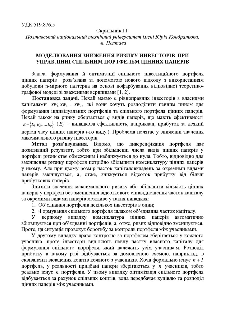 Моделювання зниження ризику инвесторів при управлінні спільним портфелем цінних паперів