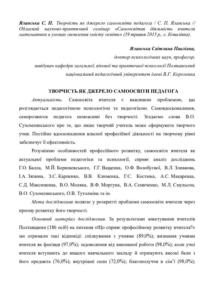 Стаття 2020/04/14Творчість як джерело самоосвіти педагога