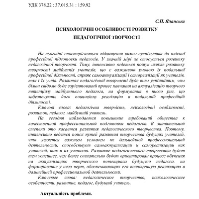 Стаття 2020/03/26Психологічні особливості розвитку педагогічної творчості