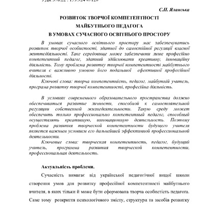 Стаття 2020/03/26Проблема развития творческой компетентности педагога
