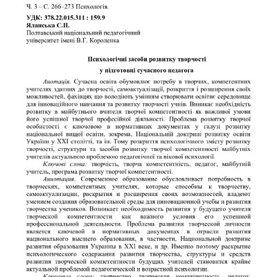 Стаття 2026/01/27Психологічні засоби розвитку творчості у підготовці сучасного педагога