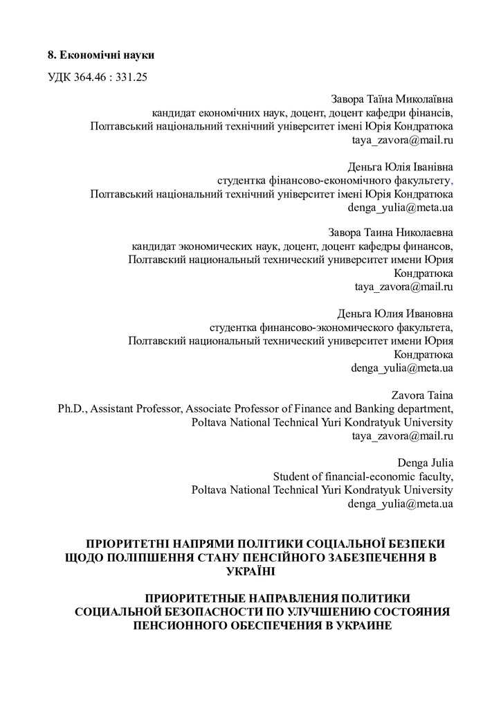 2017/12/19Пріоритетні напрями політики соціальної безпеки щодо поліпшення стану пенсійного забезпечення в Україні