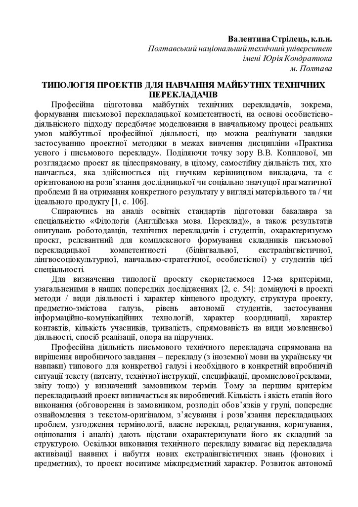 Типологія проектів для навчання майбутніх технічних перекладачів