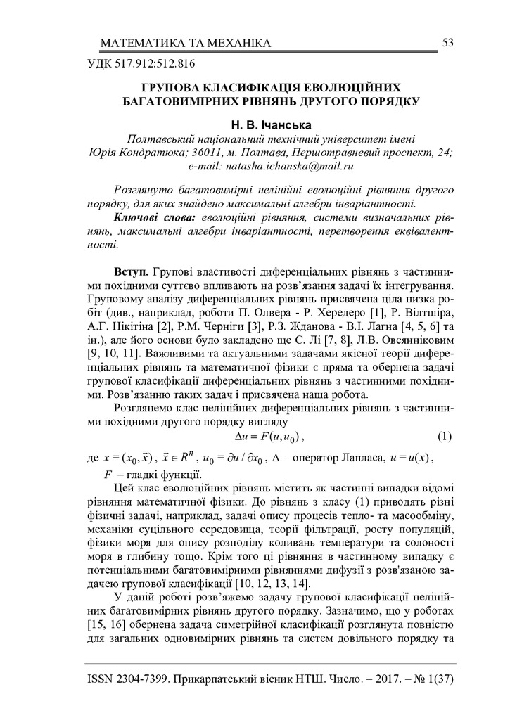 2018/10/08Групова класифікація еволюційних багатовимірних рівнянь другого порядку