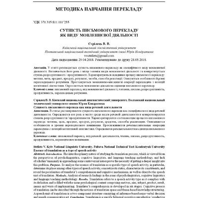 2018/07/16Сутність письмового перекладу як виду мовленнєвої діяльності
