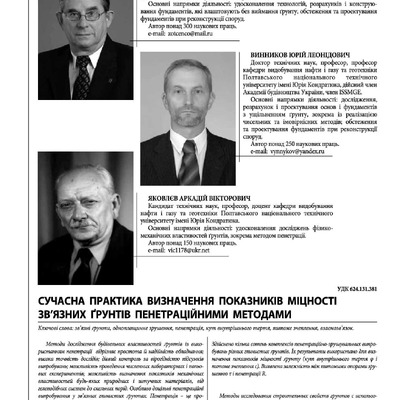 Стаття 2020/05/19Сучасна практика визначення показників міцності зв'язних ґрунтів пєнетраційними методами