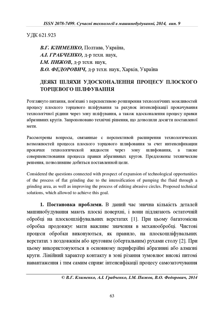 Деякі шляхи удосконалення процесу плоского торцевого шліфування