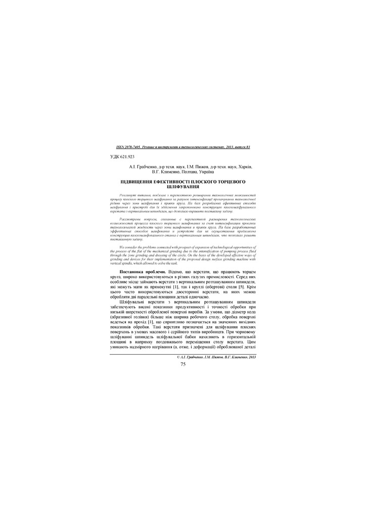 Розглянуті питання, пов'язані з перспективою розширення технологічних можливостей процесу плоского торцевого шліфування за рахунок інтенсифікації прокачування технологічної рідини через зони шліфув...