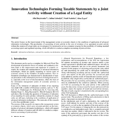 Стаття 2019/05/10Innovation Technologies Forming Taxable Statements by a Joint Activity without Creation of a Legal Entity