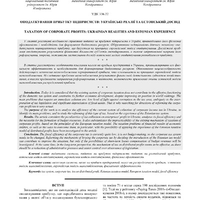 Оподаткування прибутку підприємств: українські реалії та естонський досвід