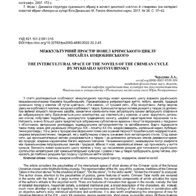 У статті розглядаються особливості міжкультурного простору новел кримського циклу відомого українського письменника-класика Михайла Коцюбинського. Проаналізовано репрезентацію життя, побуту, звичаї...