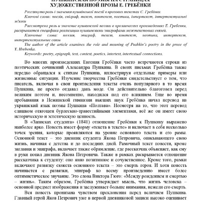 Стаття 2024/12/23Пушкінська поезія на сторінках художньої прози Є. Гребінки