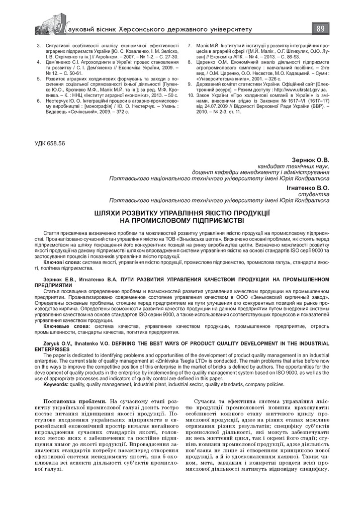 2018/11/09Шляхи розвитку управління якістю продукціїЇ на промисловому підприємстві