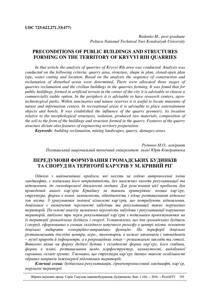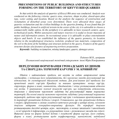 Preconditions of public buildings fnd structures forming on the territory of Kryvyi Rih quarries