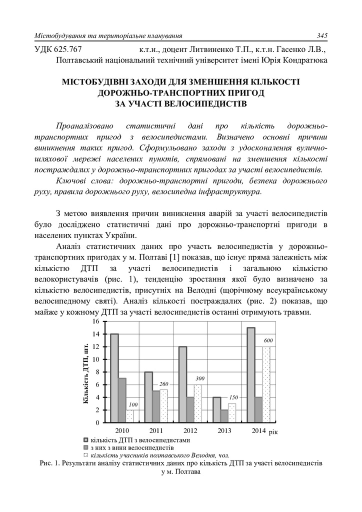 Містобудівні заходи для зменшення кількості дорожньо-транспортних пригод за участі велосипедистів