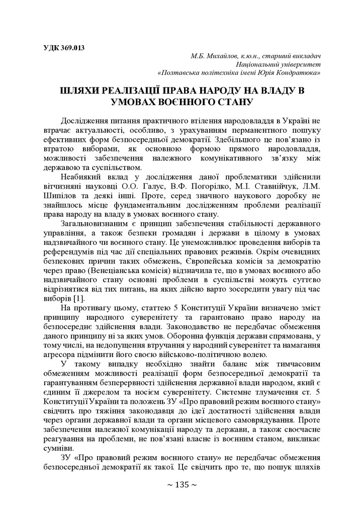 Дослідження питання практичного втілення народовладдя в Україні не втрачає актуальності, особливо...