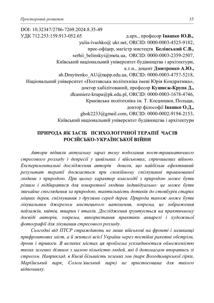 Природа як засіб психологічної терапії часів російсько-української війни