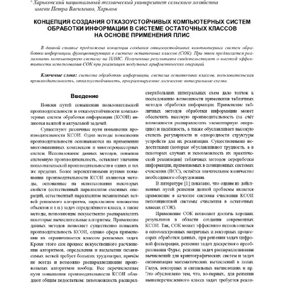 В данной статье предложена концепция создания отказоустойчивых компьютерных систем обработки инфо...
