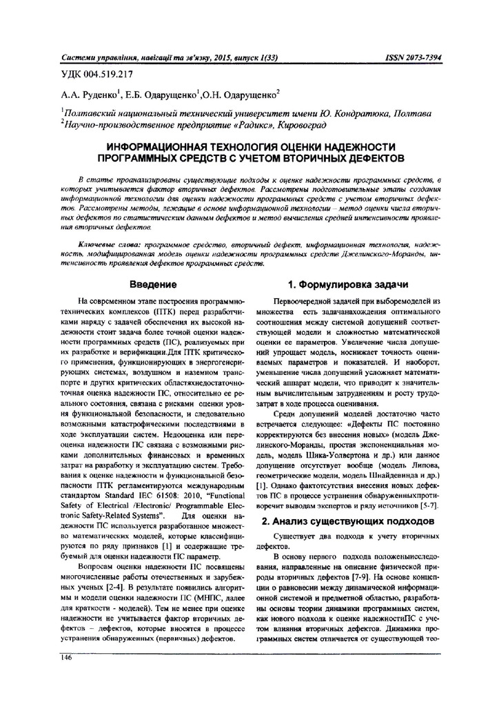 Стаття 2018/12/12Учет фактора вторичных дефектов при оценке надежности программных средств