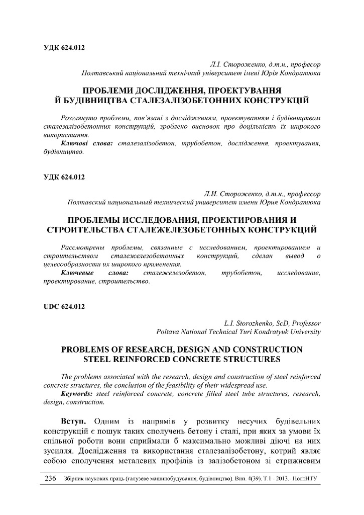 Проблеми дослідження, проектування й будівництва сталезалізобетонних конструкцій