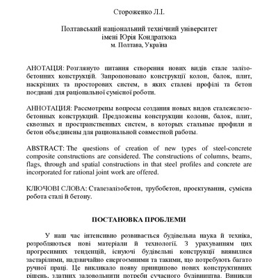 Розглянуто питання створення нових видів стале залізобетонних конструкцій. Запропоновано конструк...
