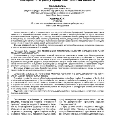 Стаття 2023/02/15Тенденції та перспективи розвитку молодіжного ринку праці Полтавської області