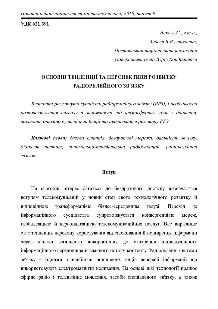 Основні тенденції та перспективи розвитку радіорелейного зв’язку