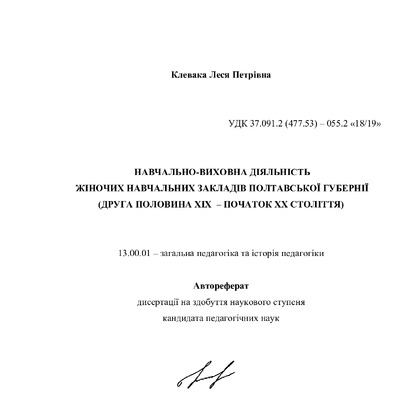 Навчально-виховна діяльність жіночих навчальних закладів Полтавської губернії (друга половина XIX - початок XX століття)