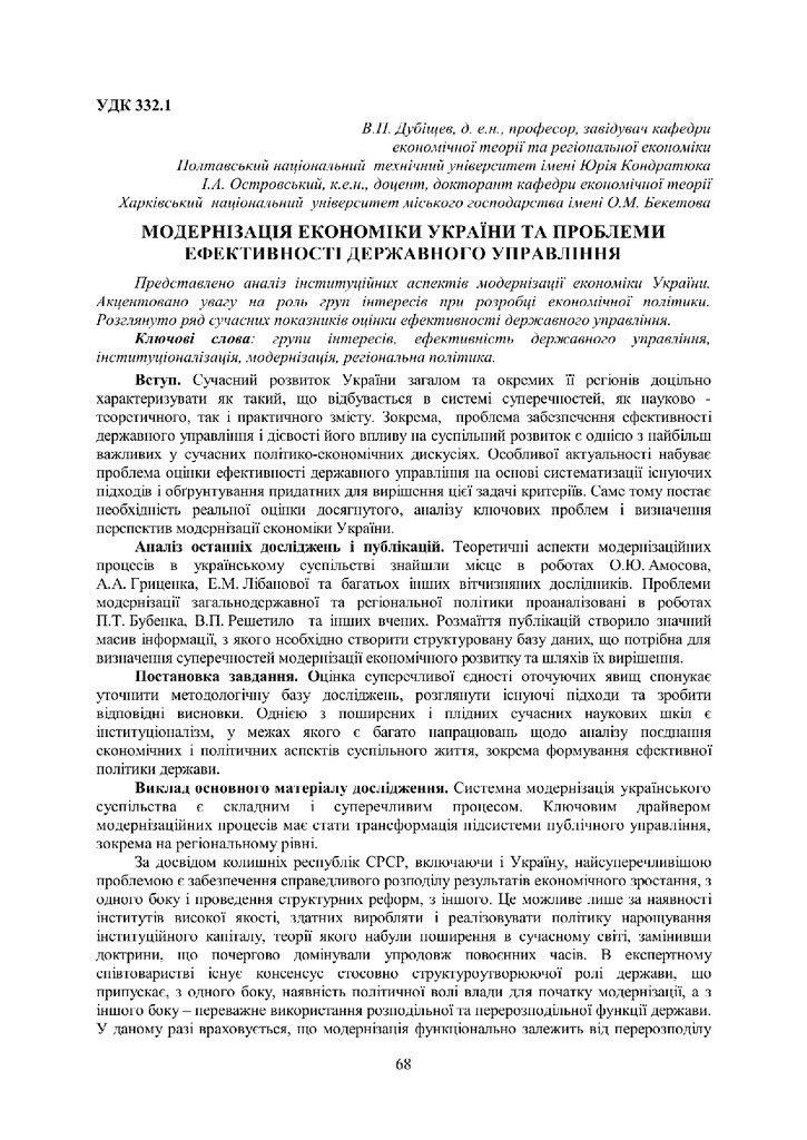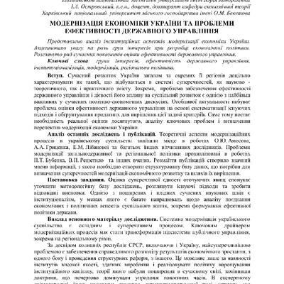 Стаття 2021/07/09Модернізація економіки України та проблеми ефективності державного управління