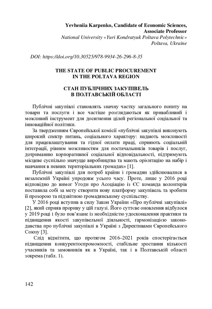 Стаття 2023/07/28The State Of Public Procurement in the Poltava Region
