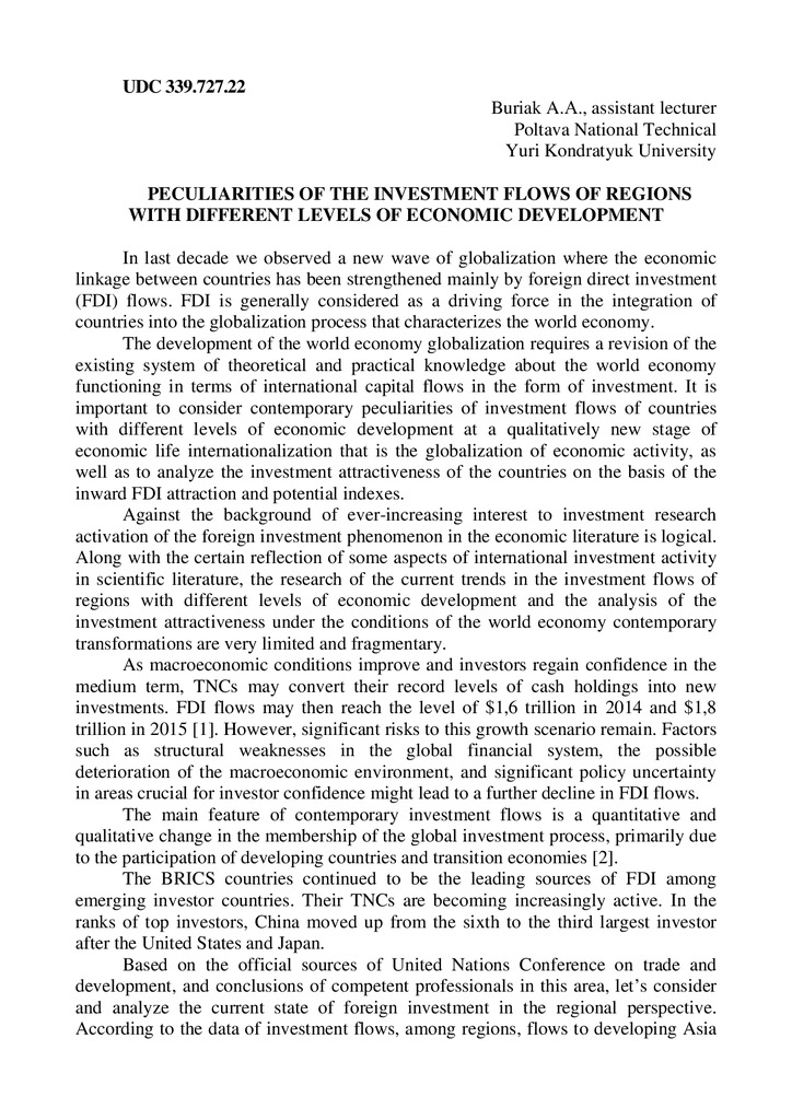 Особливості інвестиційних потоків в регіонах з різним рівнем економічного розвитку