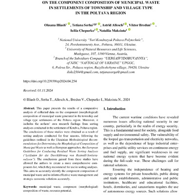 2025/09/24Comparative analysis of the study results on the component composition of municipal waste in settlements of township and village type in the Poltava region