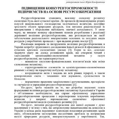 Стаття 2018/04/26Удосконалення механізму формування ефективної державної політики ресурсозбереження