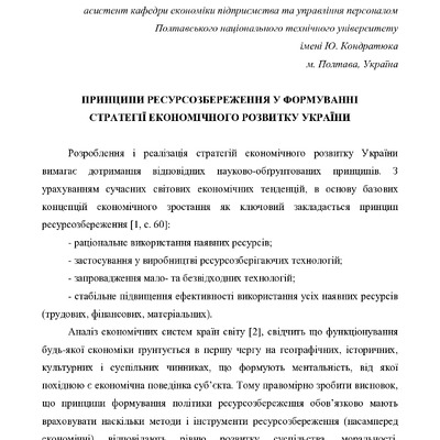 Стаття 2020/06/10Ресурсозбереження як стратегічний напрямок розвитку підприємств водопровідно-каналізаційного господарства