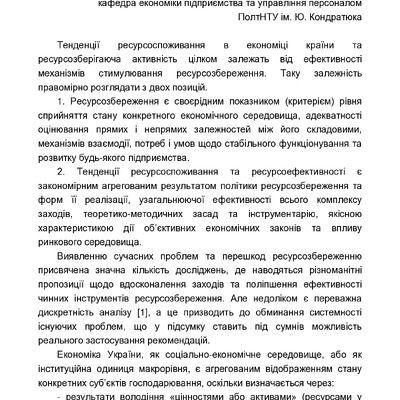 Стаття 2023/10/25Ресурсомісткість як головний критерій ресурсозбереження на виробництві