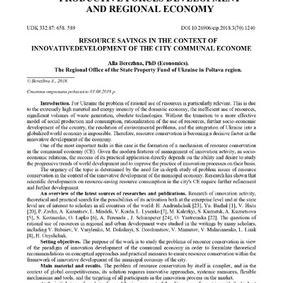 Стаття 2020/05/12Resource savings in the context of innovative development of the city communal econome