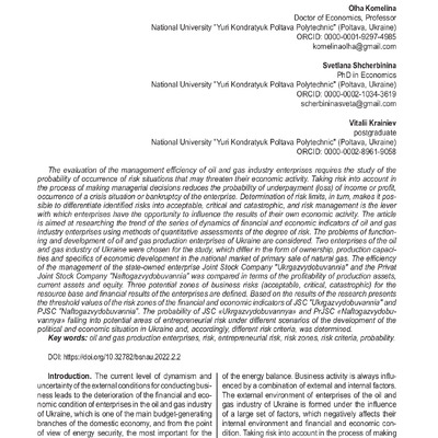 The evaluation of the management efficiency of oil and gas industry enterprises requires the study of the probability of occurrence of risk situations that may threaten their economic activity. Tak...