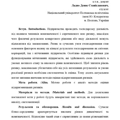 У статті використано методи кількісного оцінювання економічних ризиків що в умовах невизначеності...