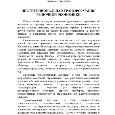 Стаття 2020/10/13Інституціональна трасформація ринкової економіки