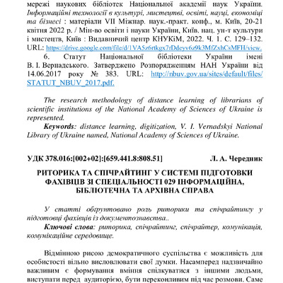 У статті обґрунтовано роль риторики та спічрайтингу у підготовці фахівців із документознавства.