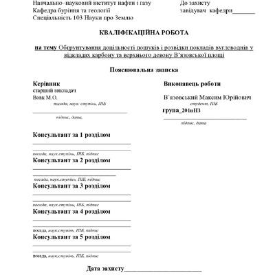 Обгрунтування доцільності пошуків і розвідки покладів вуглеводнів у відкладах карбону та верхнього девону В’язовської площі