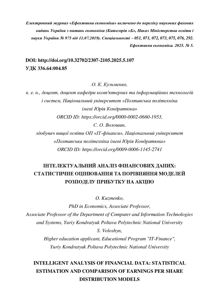 Інтелектуальний аналіз фінансових даних: статистичне оцінювання та порівняння моделей розподілу прибутку на акцію
