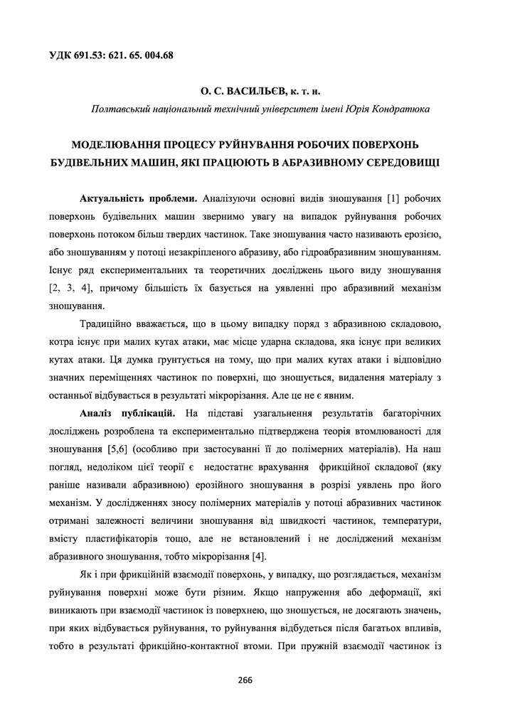 Метою дослідження є створення моделі процесу руйнування робочих поверхонь будівельних машин, які ...