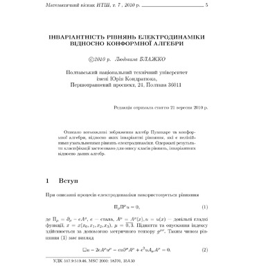 Інваріантність рівнянь електродинаміки відносно конформної алгебри.